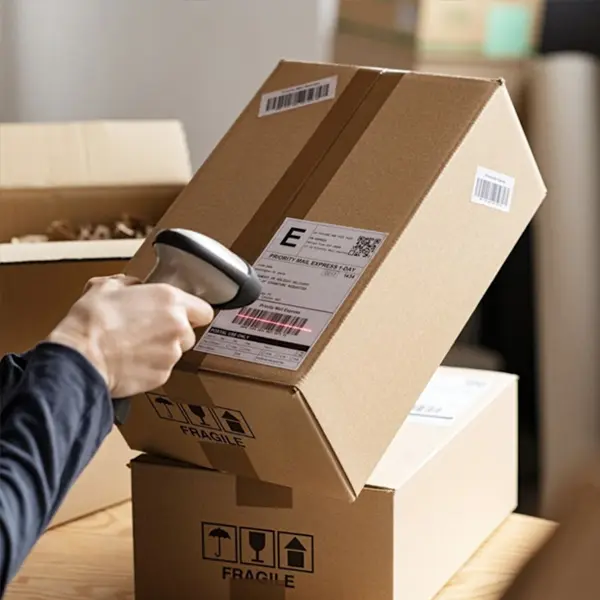 Yes. We support barcode printing, fragile icons, handling instructions, and compliance messaging.