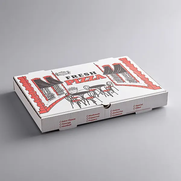 Corrugated Pizza Box is a sturdy and food-safe packaging solution designed to keep pizzas hot, fresh, and secure during delivery or takeaway. Made from durable corrugated board, it provides excellent insulation and protection against grease or moisture. With customizable sizes, prints, and finishes, BoxBaba custom packaging delivers high-quality pizza boxes that combine strength, convenience, and branding appeal.