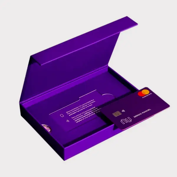 | Custom Card Slot Insert | Precision-cut foam or paperboard inserts securely hold the standard credit card dimensions ($85.60 \text{ mm} \times 53.98 \text{ mm}$), preventing movement. | Hinged/Magnetic Flip-Top: Presents the card immediately upon opening like a book, minimizing handling. |