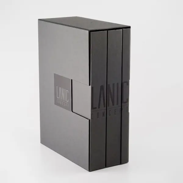 Interior Lining: The inside of the slipcase is often lined with a contrasting color or a premium material (e.g., velvet or silk paper) to create a luxurious sliding action and prevent scratching.