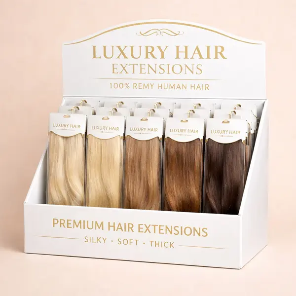It is a real problem when your retail display looks like a cluttered wreck because the cardboard is too weak to stand up straight. Most suppliers use this thin paper junk that bends and sags the moment you load it with hair or put it on a counter. It is honestly embarrassing. If your hair extension display boxes are leaning over or the edges are all frayed it makes your premium products look like a clearance rack afterthought. We build displays with real strength—thick rigid board that stays upright and keeps your branding front and center. You need a setup that stays stiff and looks professional under bright lights. It is just better packaging.