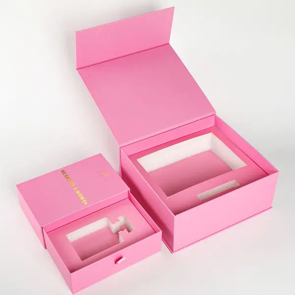 Tailor your pink magnetic gift boxes to perfectly fit your products and brand identity: