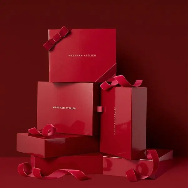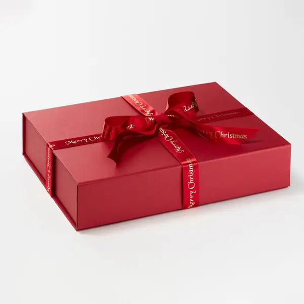 Premium boxes finished in red, used for retail, eCommerce, or corporate gifting.