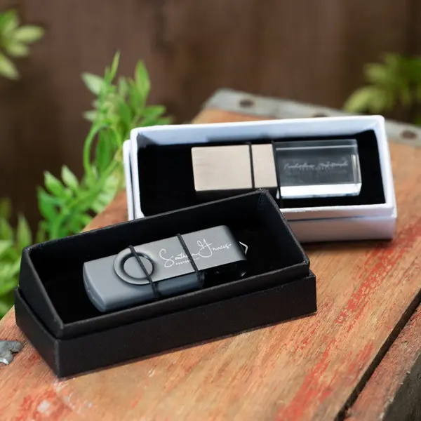 The Interactive Choice (Slide/Magnetic): Want something cool? Go for a magnetic closure box (nice snap!) or a slide box where the drive pulls out of a tray. Very modern, very memorable.