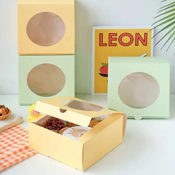 Your pastries are visual masterpieces—don’t hide them! We know visibility and protection are key. Our window boxes use reliable materials like sturdy cardstock, natural Kraft paper, or corrugated board, paired with high-clarity PET or PVC film windows. This makes sure your cakes, cookies, and doughnuts stay safe, fresh, and totally visible. Perfect for retail display, farmer’s markets, or quick counter sales—our packaging protects the food while making your brand look premium and totally confident in its products.